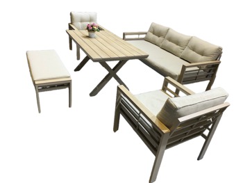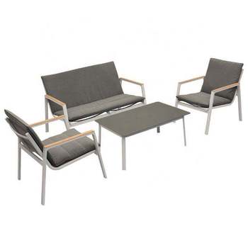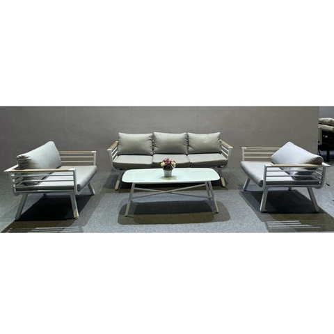 Bộ ghế sofa khung nhôm màu xám nhạt và Bộ bàn với đệm sang trọng cho khu vực phòng khách ngoài trời