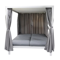 Lit de jour pergola à cadre en aluminium blanc avec rideaux à baldaquin gris pour la détente en plein air